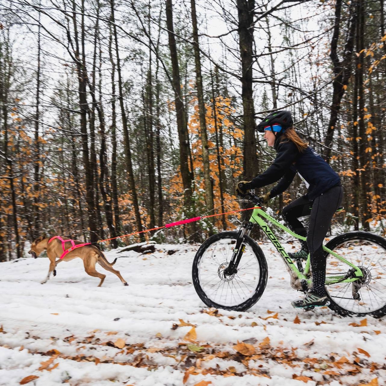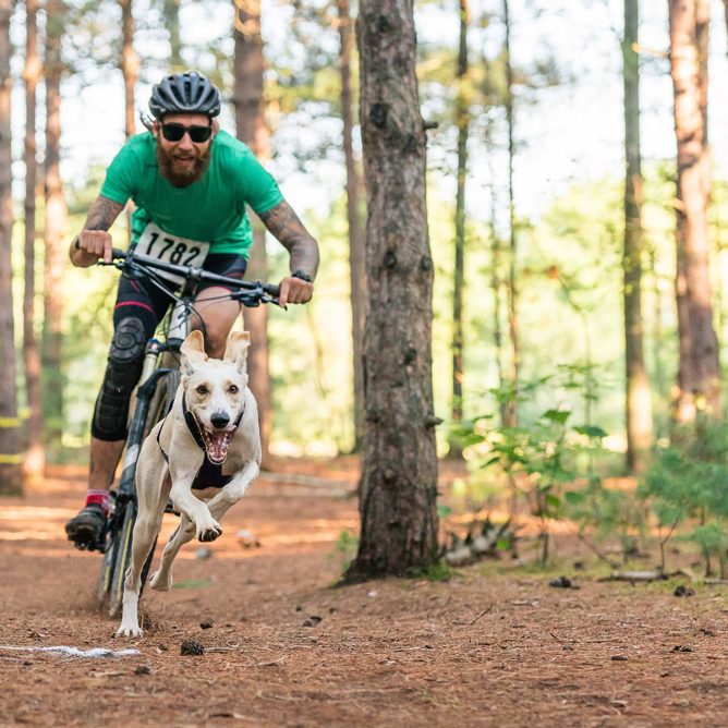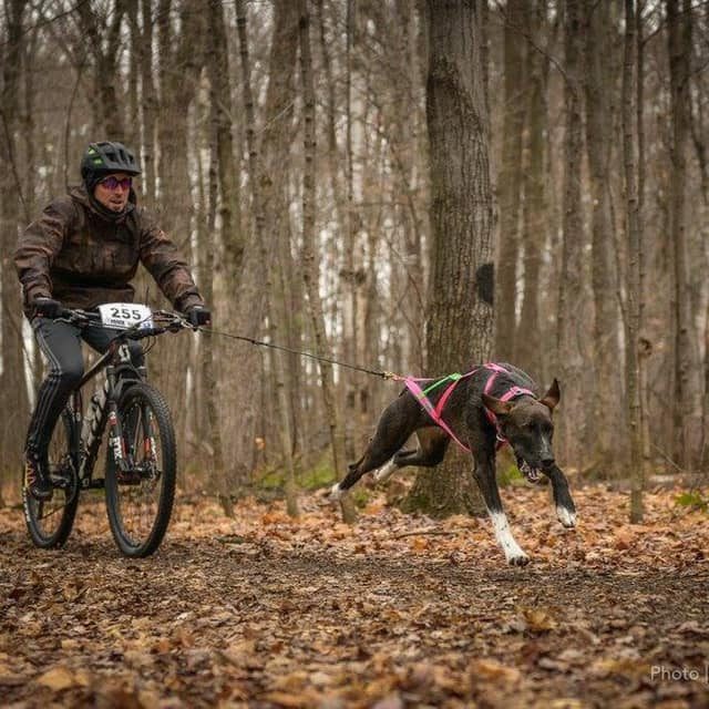 Bikejoring is a pulling sport or rather traction sport like skijoring and canicross where the dog or harnessed dog team must pull and run ahead of a cyclist. This relatively new sport was arguably created to keep skijoring teams in good shape during the warmer months!